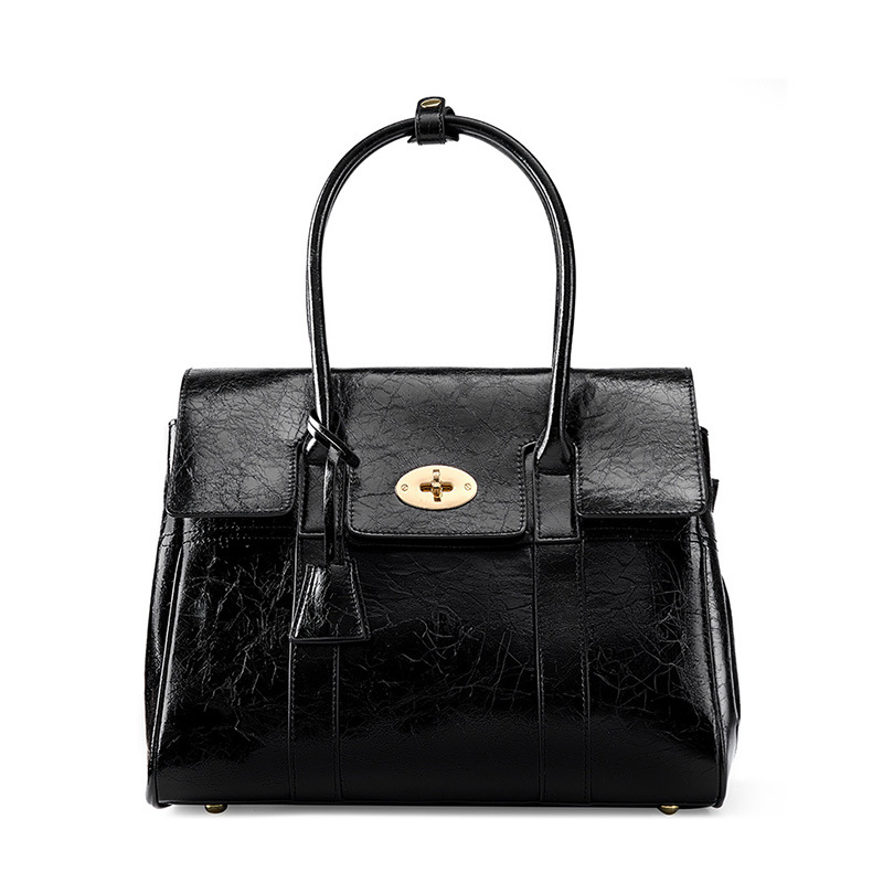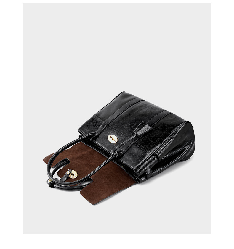 Large Capacity Soft Genuine Leather Tote Bag Black