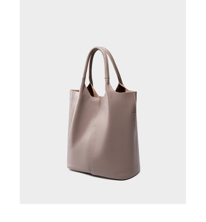 Ladies' Large Capacity Genuine Soft Leather Tote Bag Grey