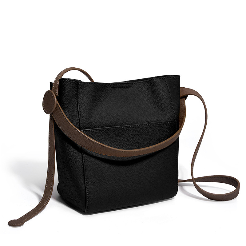 Genuine Leather Crossbody Bag Large Capacity Shoulder Bag Black