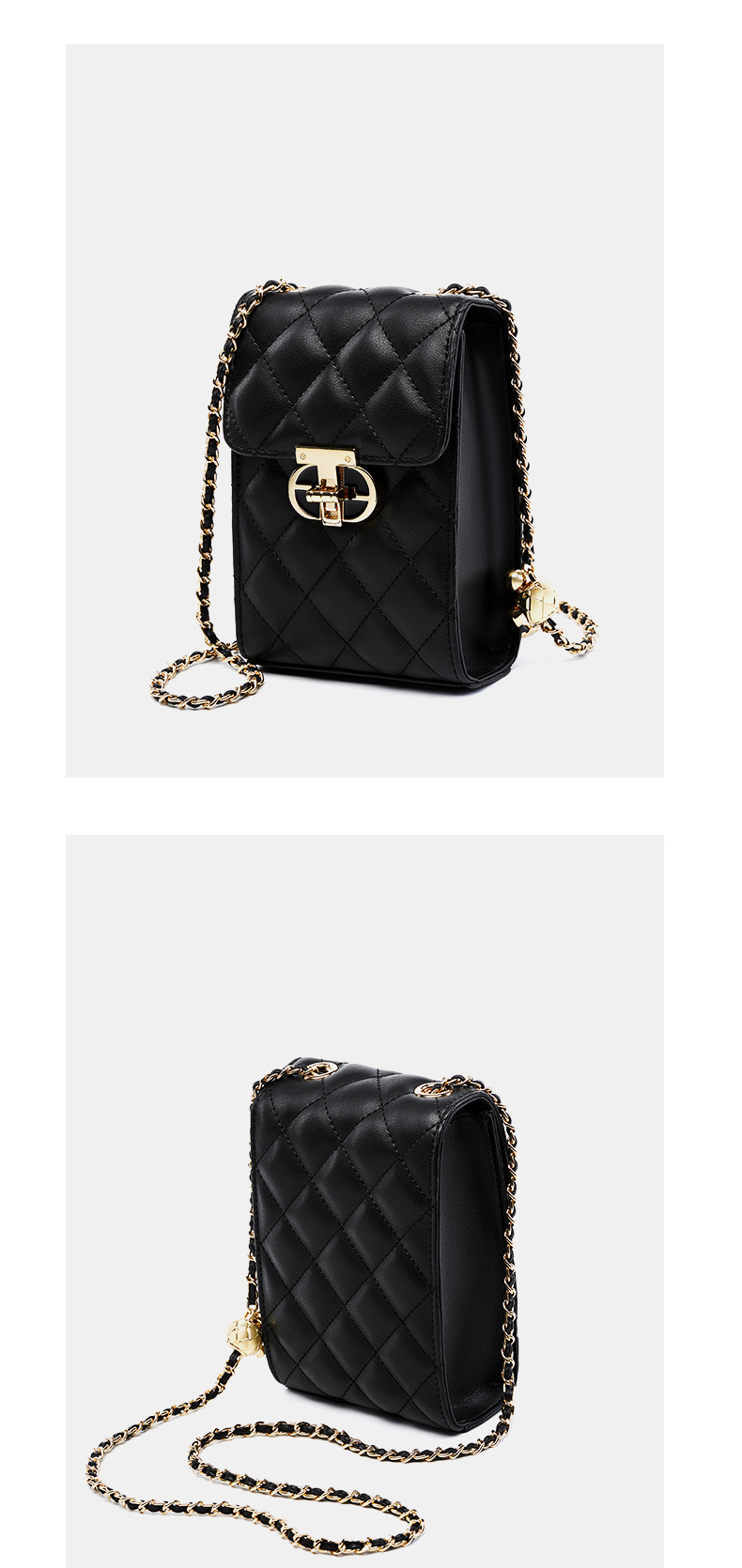 Genuine Leather Women's Bag Mini Phone Bag Women's Summer Crossbody Bag Black