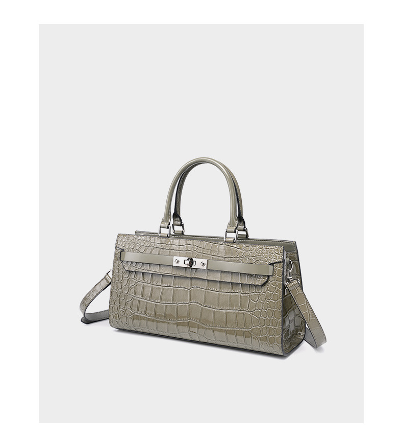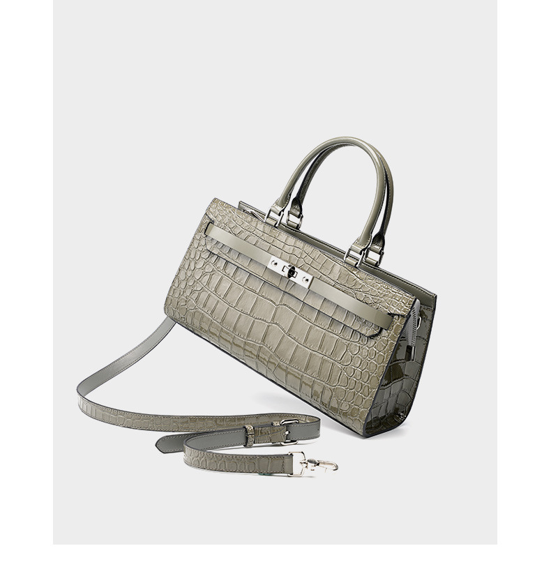Kelly Bag Crocodile Pattern Cowhide Women's Bag Wew Crossbody Large Capacity Bag Grey