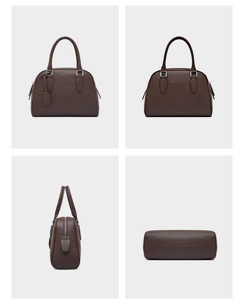 Women Genuine Leather Handbag Top-handle Satchel Bag Brown