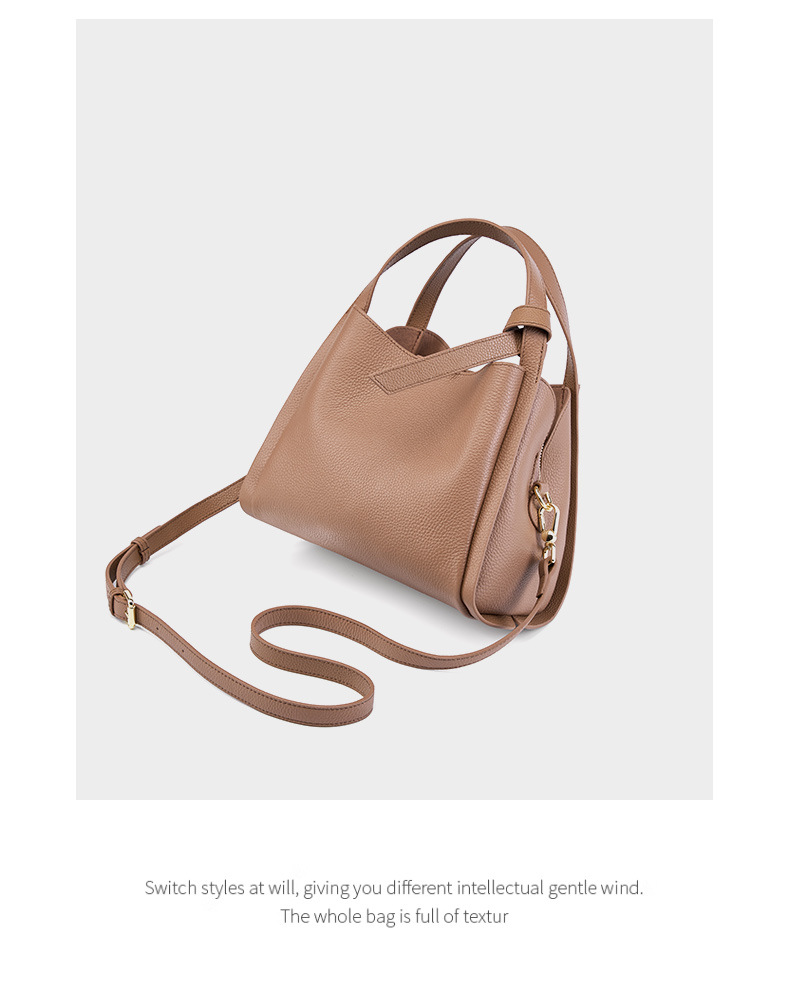 Genuine Leather Large Capacity Women's Crossbody Handbag Brown