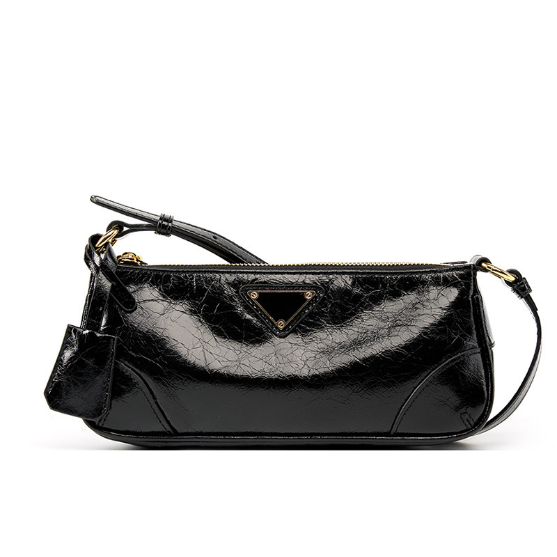 Genuine Leather Women Trendy Cresent Shoulder Bag Hobo Handbags Black
