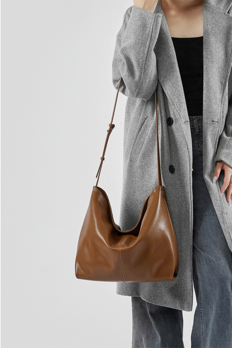 Genuine Leather Womens Fashion Shoulder Bags Large Tote Bag Retro Purse Handbag Brown