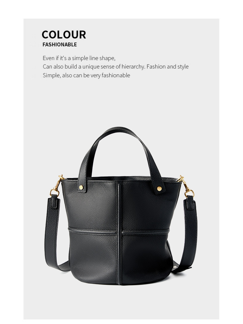 Genuine Leather Tote Bag for Women Top-handle Shoulder Bag Black