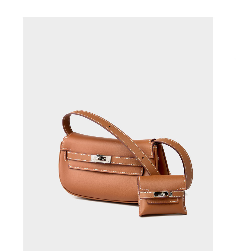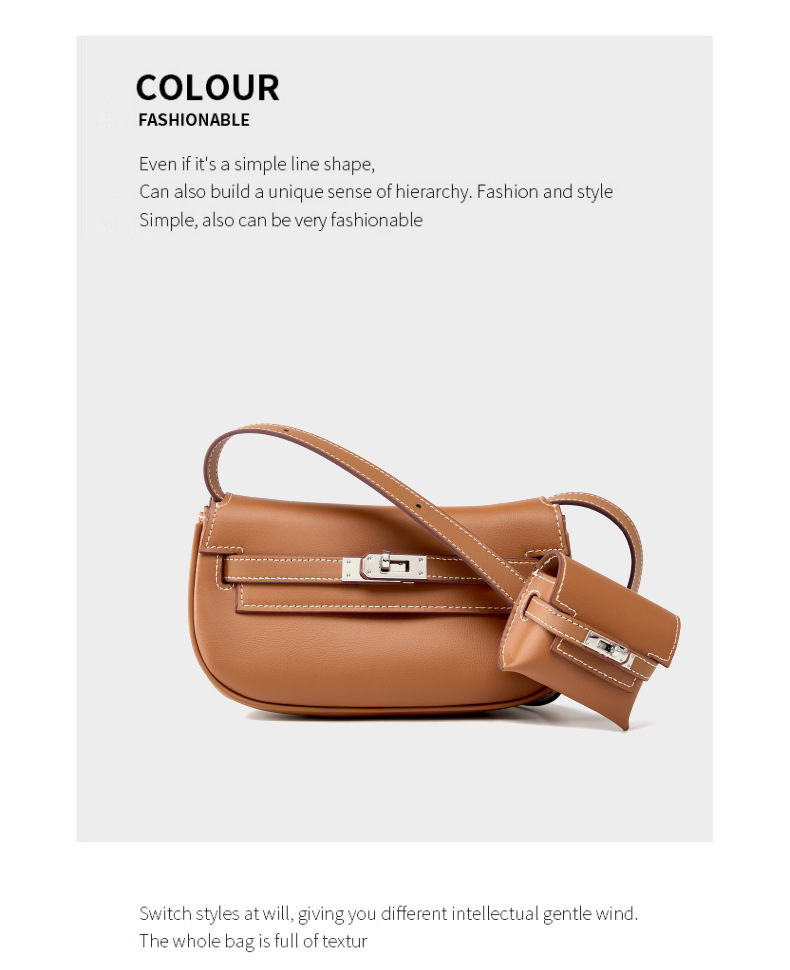 Genuine leather Moove Kelly Mini Multi Functional Saddle Women's Bag Brown