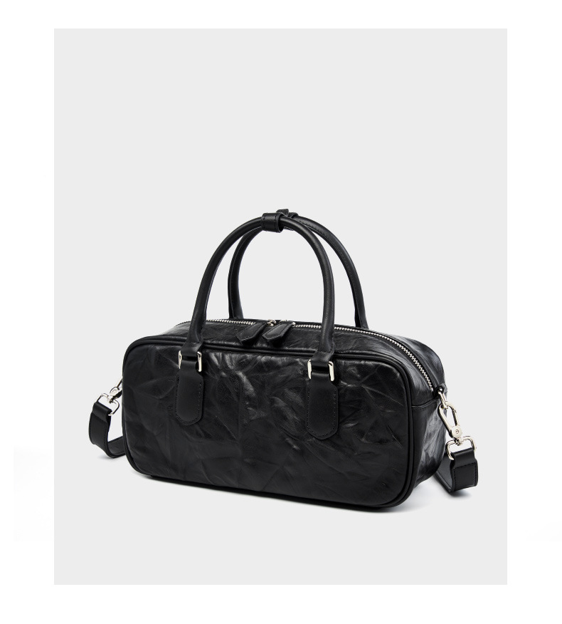 Genuine Leather Boston Bowling Bag Women Handbag Black