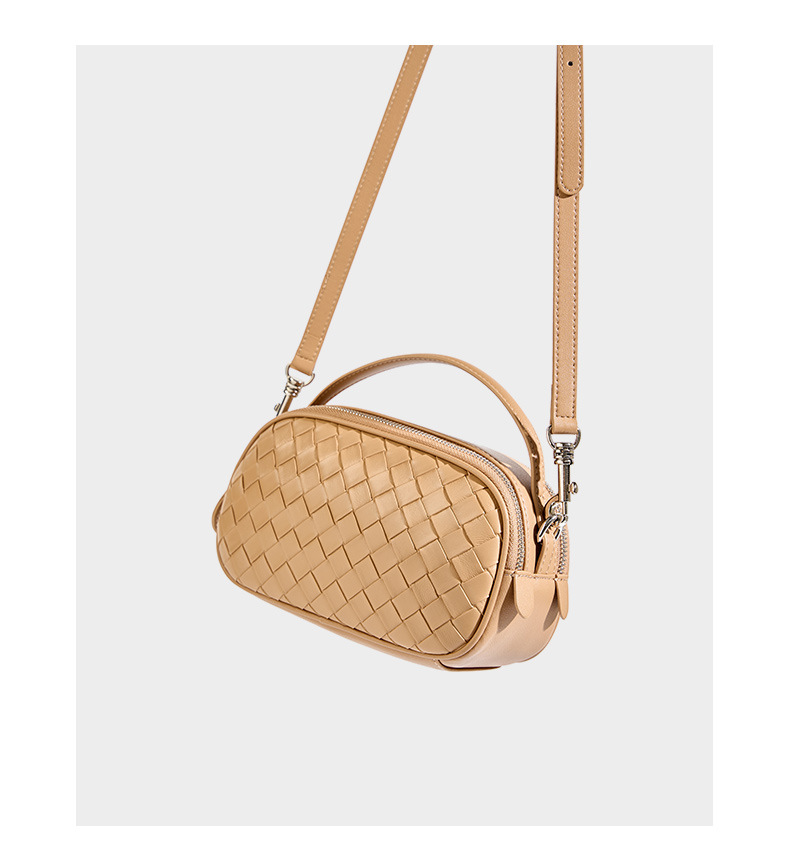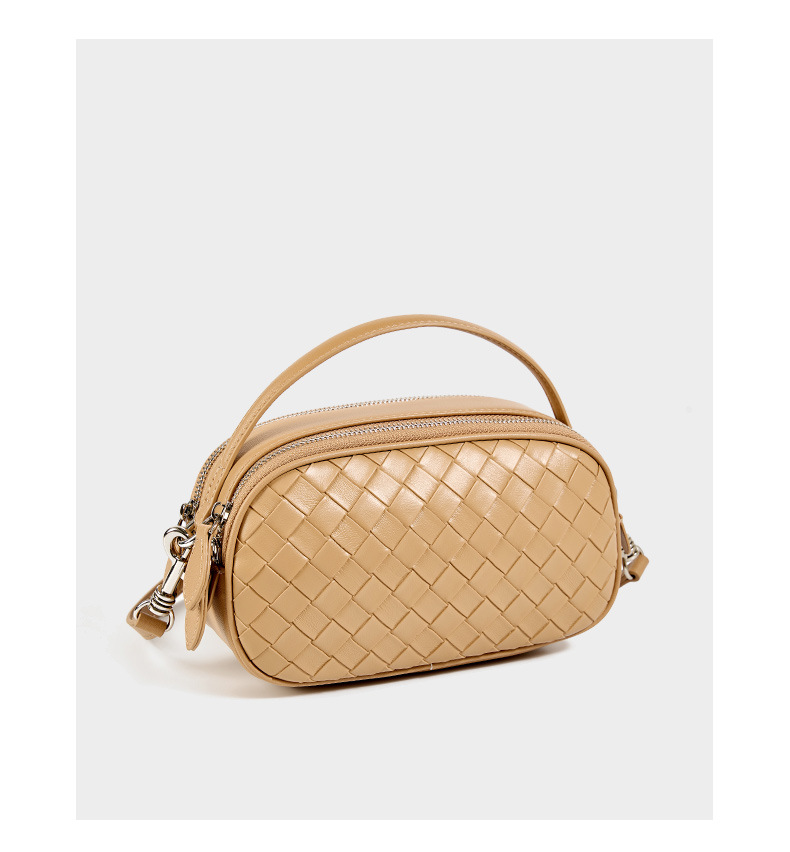 Genuine Leather Knitted Double Zipper Shoulder Crossbody Bag Yellow