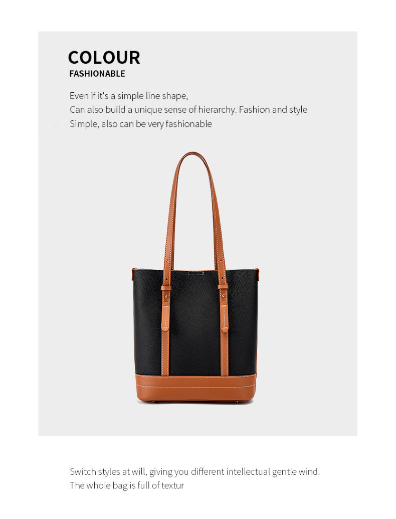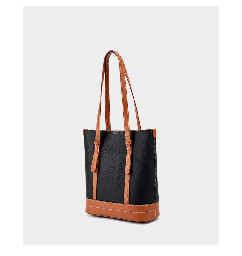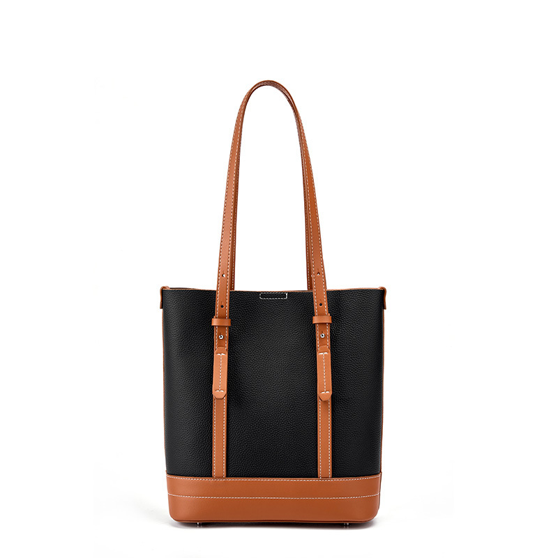 Genuine Leather Women Tote Bag and Shoulder Bag Black