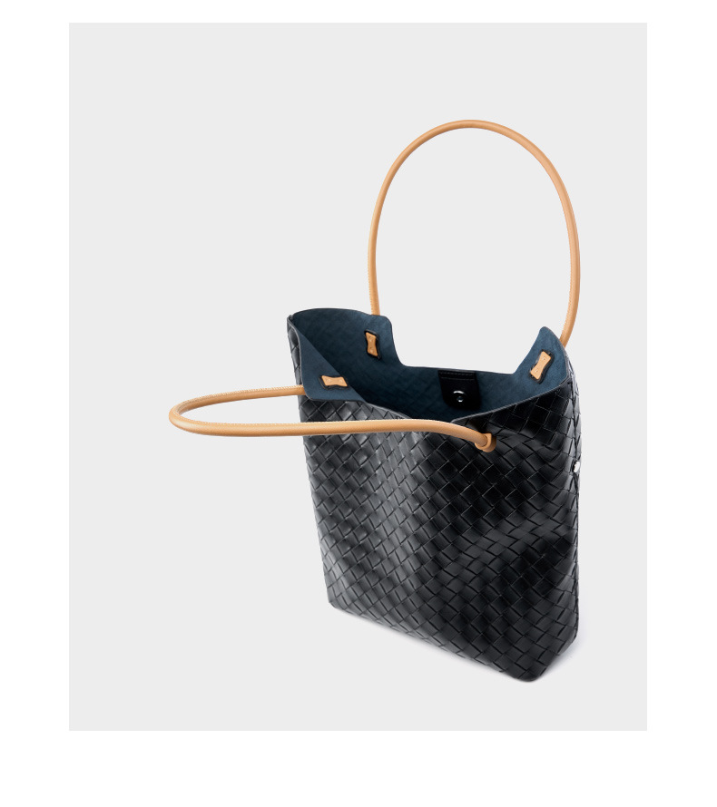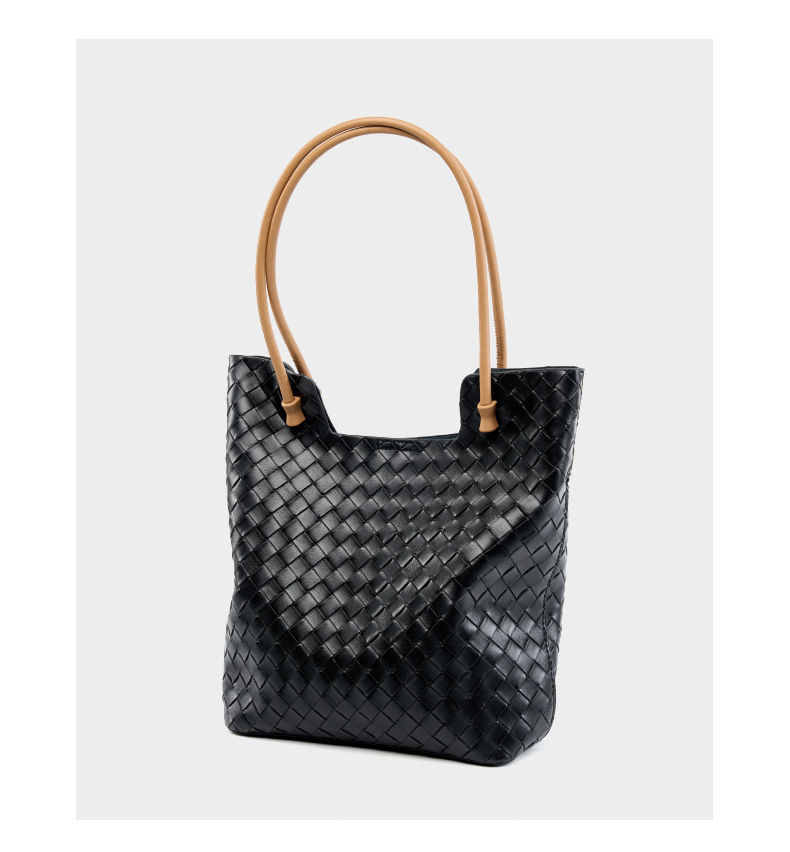 Women's Woven Bag Large Capacity Cowhide Handbag Black
