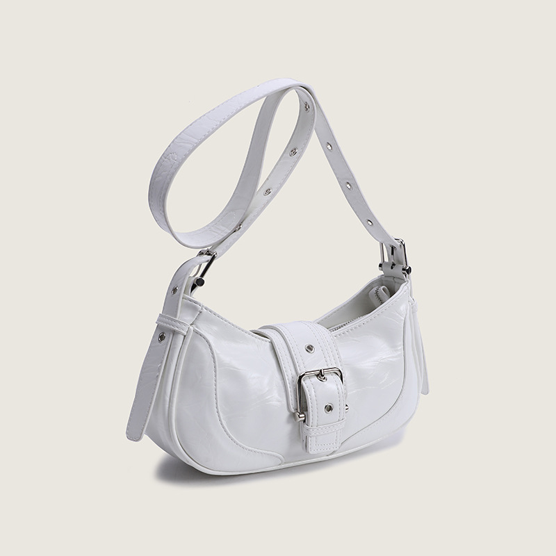 Genuine Leather Diagonal Shoulder Saddle Bag White