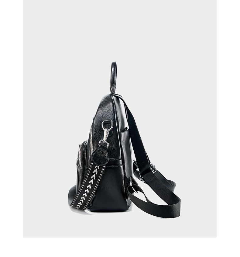 Genuine Leather Ladies' Large Capacity Travel Backpack Black