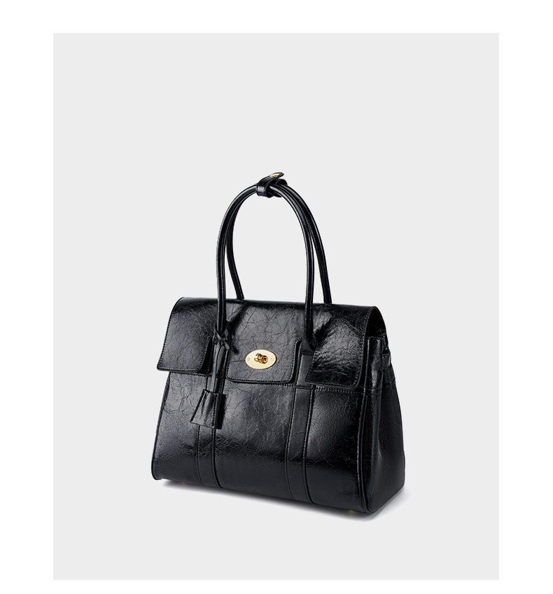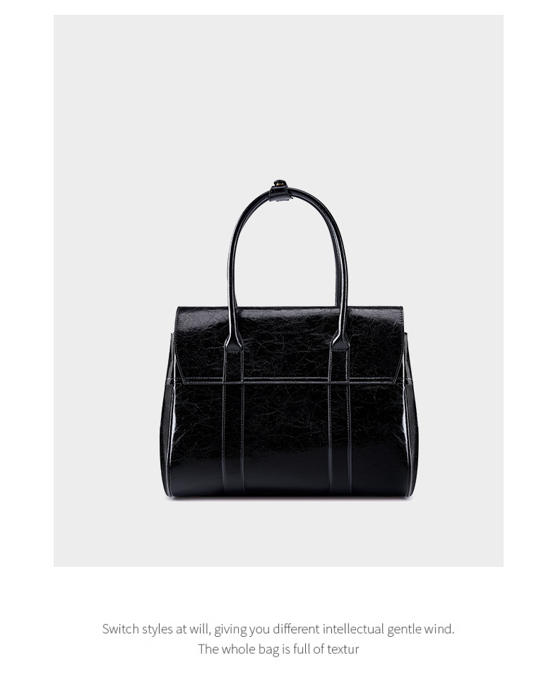 Large Capacity Soft Genuine Leather Tote Bag Black
