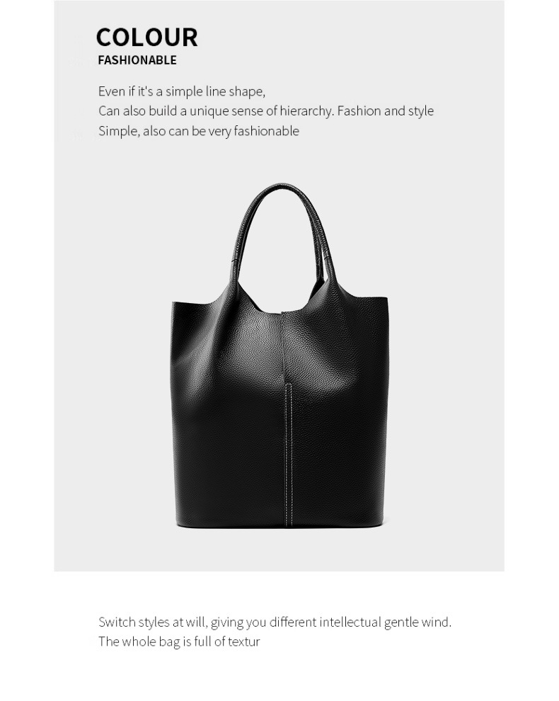 Ladies' Large Capacity Genuine Soft Leather Tote Bag Black