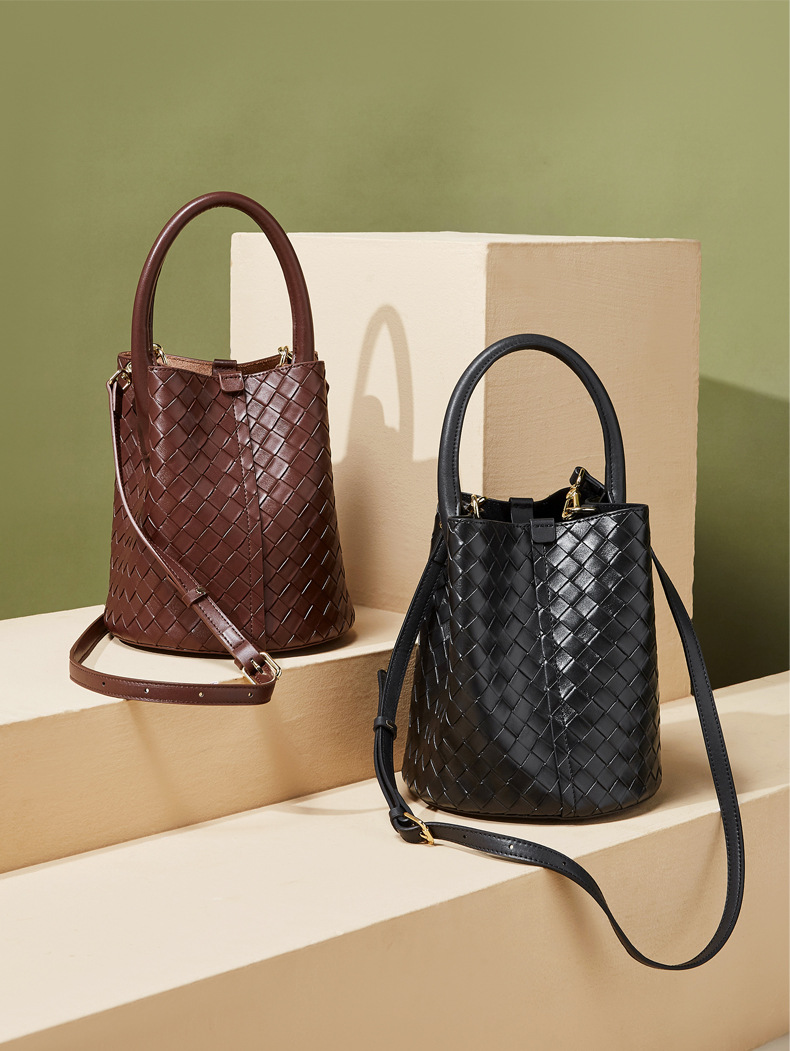 Genuine Leather Handbag Woven Crossbody Bag Purpple