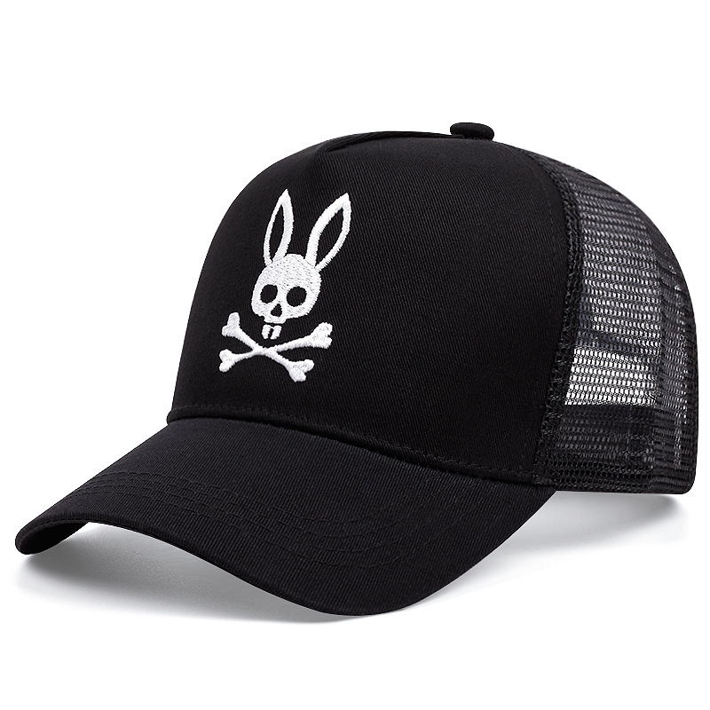 Embroidered Baseball Cap Skull Rabbit Peaked Cap Black