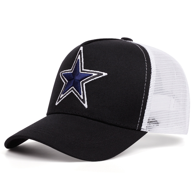 Five Pointed Star Embroidered Baseball Cap Outdoor Sports Mesh Peaked Cap Black White