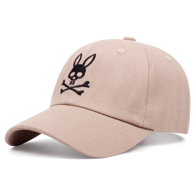 Embroidered Skeleton Rabbit Baseball Cap Outdoor Sports Mesh Peaked Cap Khaki