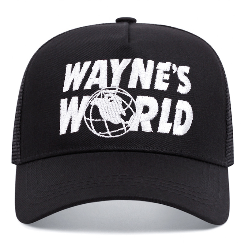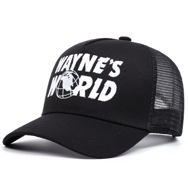 Wayne's World Embroidered Baseball Cap Outdoor Sports Mesh Peaked Cap Black