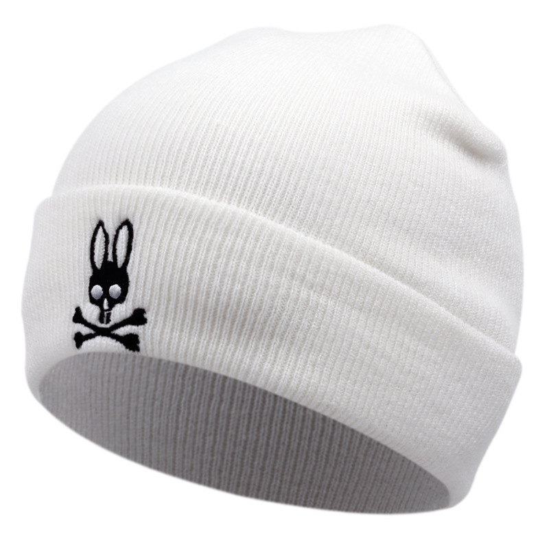 Embroidery of Rabbit Skull Baseball Cap Outdoor Warm Woolen Hat White