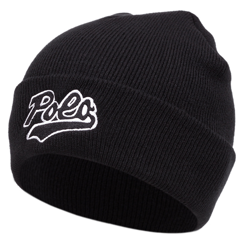 Embroidered Of POEA Hat Winter Warm Woolen Hat Black