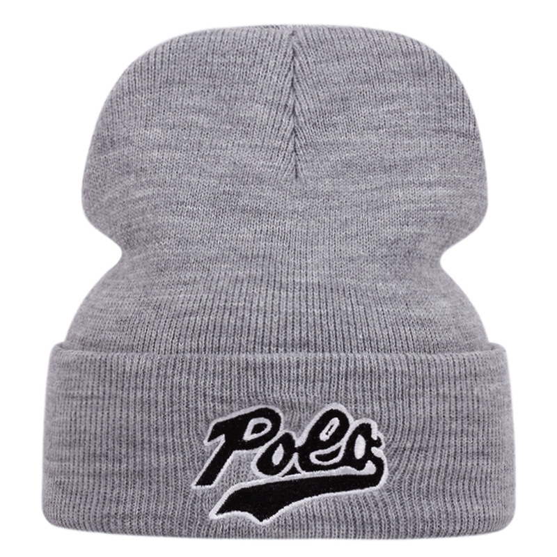 Embroidered Of POEA Hat Winter Warm Woolen Hat Grey