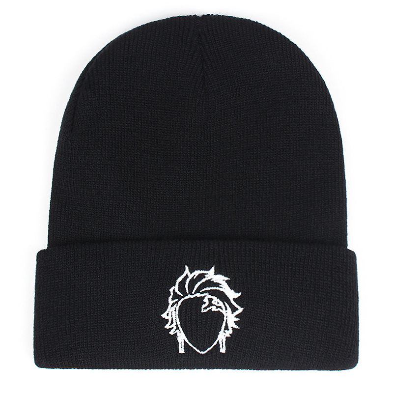 Embroidered Of Demon Slayer Blade Hat Winter Warm Woolen Hat Black