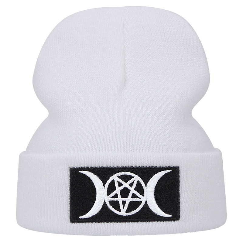 Embroidered Of Moon Hat Winter Warm Woolen Hat White