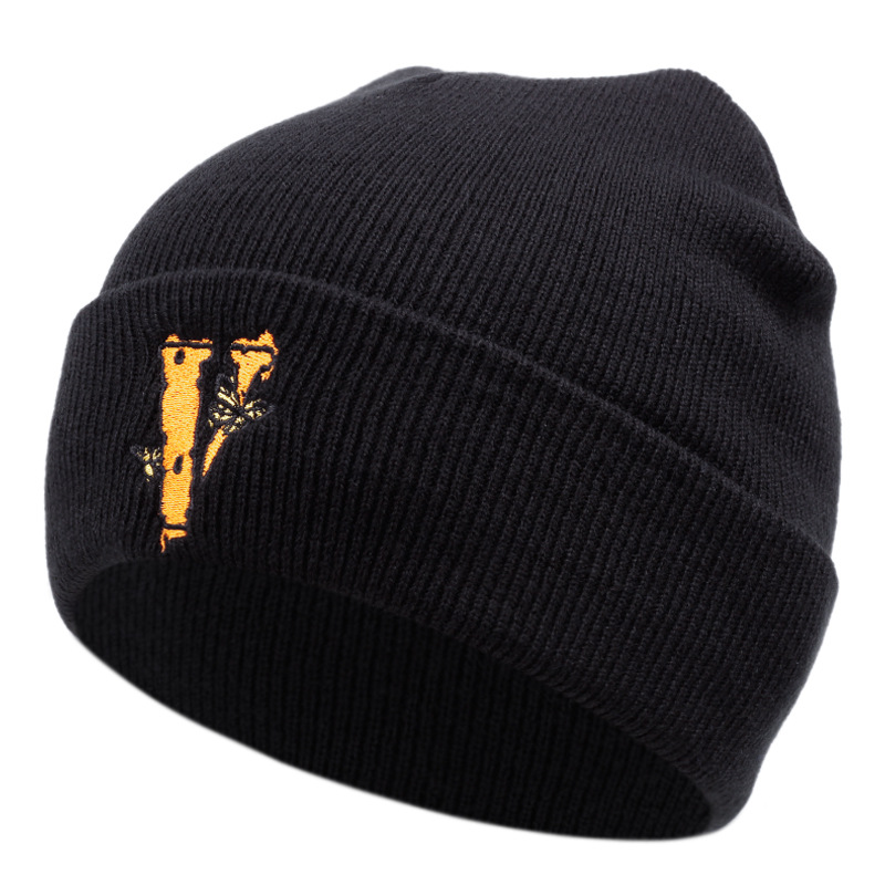 Embroidered Of Butterfly V Hat Winter Warm Woolen Hat Black