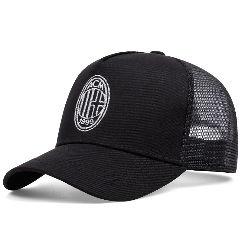 ACM1899 Football Tournament Baseball Hat Outdoor Sports Mesh Peaked Cap Black Silver Logo