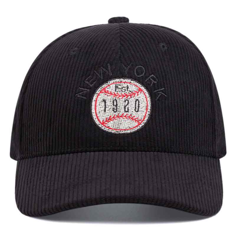 New York 1920 Corduroy Embroidered Baseball Hat Winter Outdoor Sports Peaked Cap Black