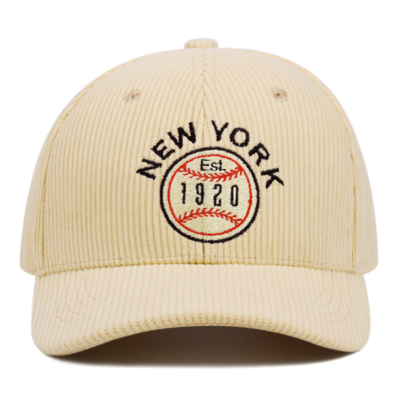 New York 1920 Corduroy Embroidered Baseball Hat Winter Outdoor Sports Peaked Cap Cream