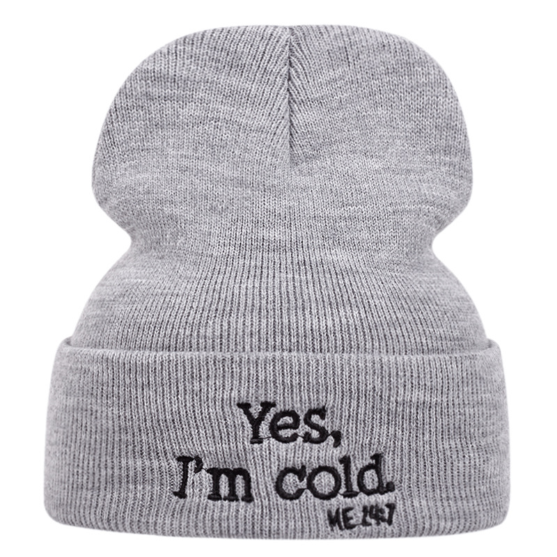 Yes I'm cold Embroidered Knitted Hat Winter Warm Men's and Women's Outdoor Knitted Hat Grey
