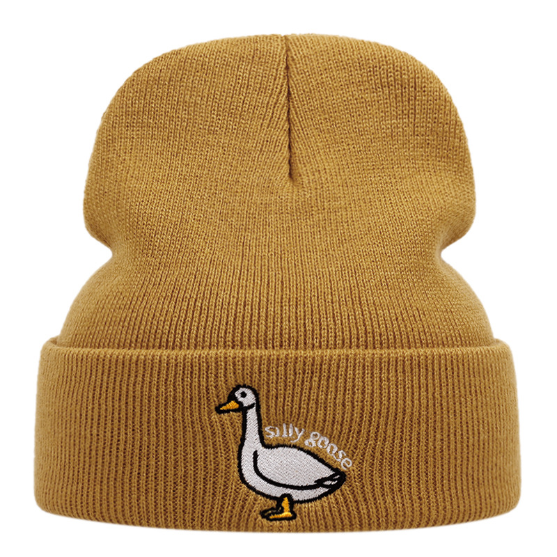 Silly Goose Embroidered Knitted Hat Winter Warm Men's and Women's Outdoor Knitted Hat khaki