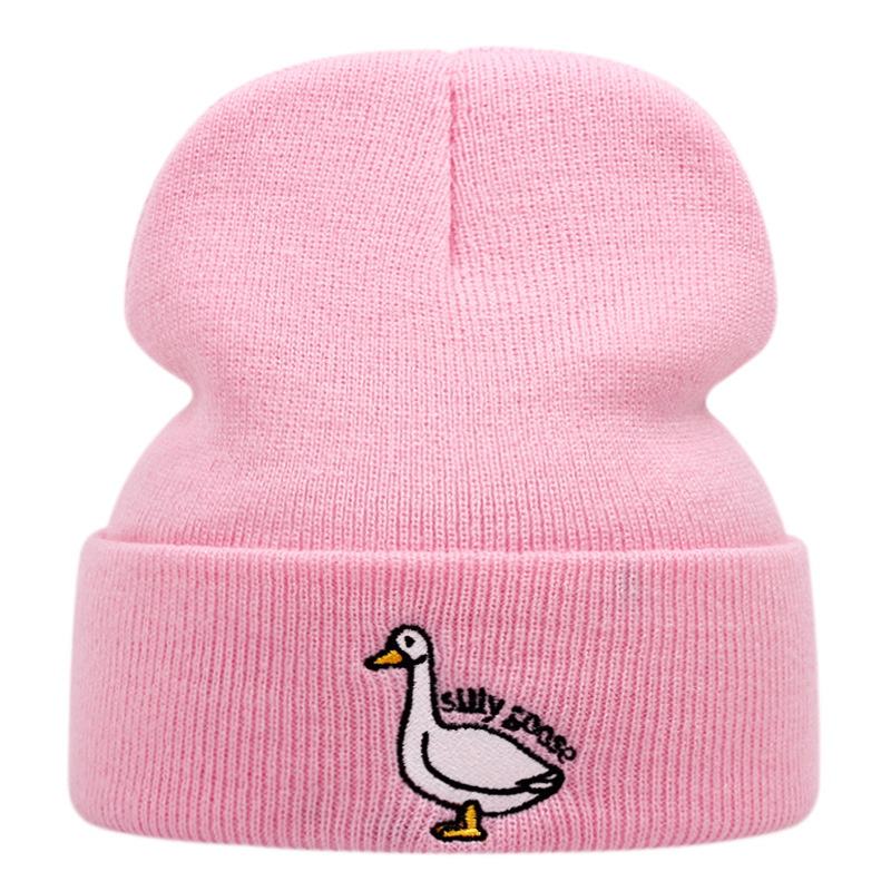 Silly Goose Embroidered Knitted Hat Winter Warm Men's and Women's Outdoor Knitted Hat Pink
