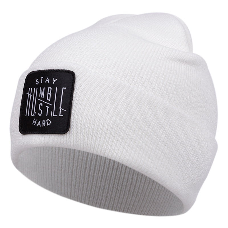 STAY Embroidered Knitted Hat Winter Warm Men's and Women's Outdoor Knitted Hat White