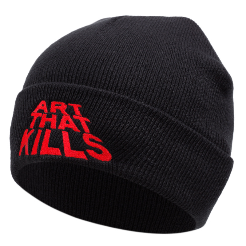ART THAT KILLS Embroidered Knitted Hat Winter Warm Men's and Women's Outdoor Knitted Hat Black