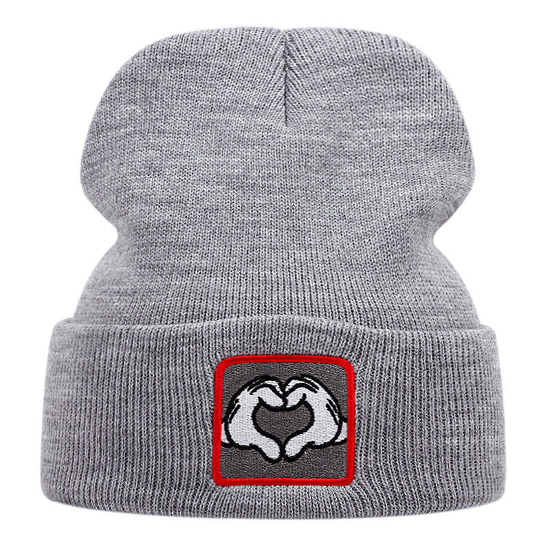 Mickey's Heart Embroidered Knitted Hat Winter Warm Men's and Women's Outdoor Knitted Hat Grey