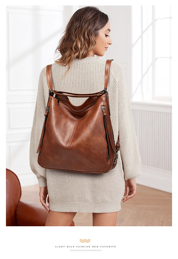 Women Tote Bag Handbags PU Leather Fashion Hobo Shoulder Bags Brown