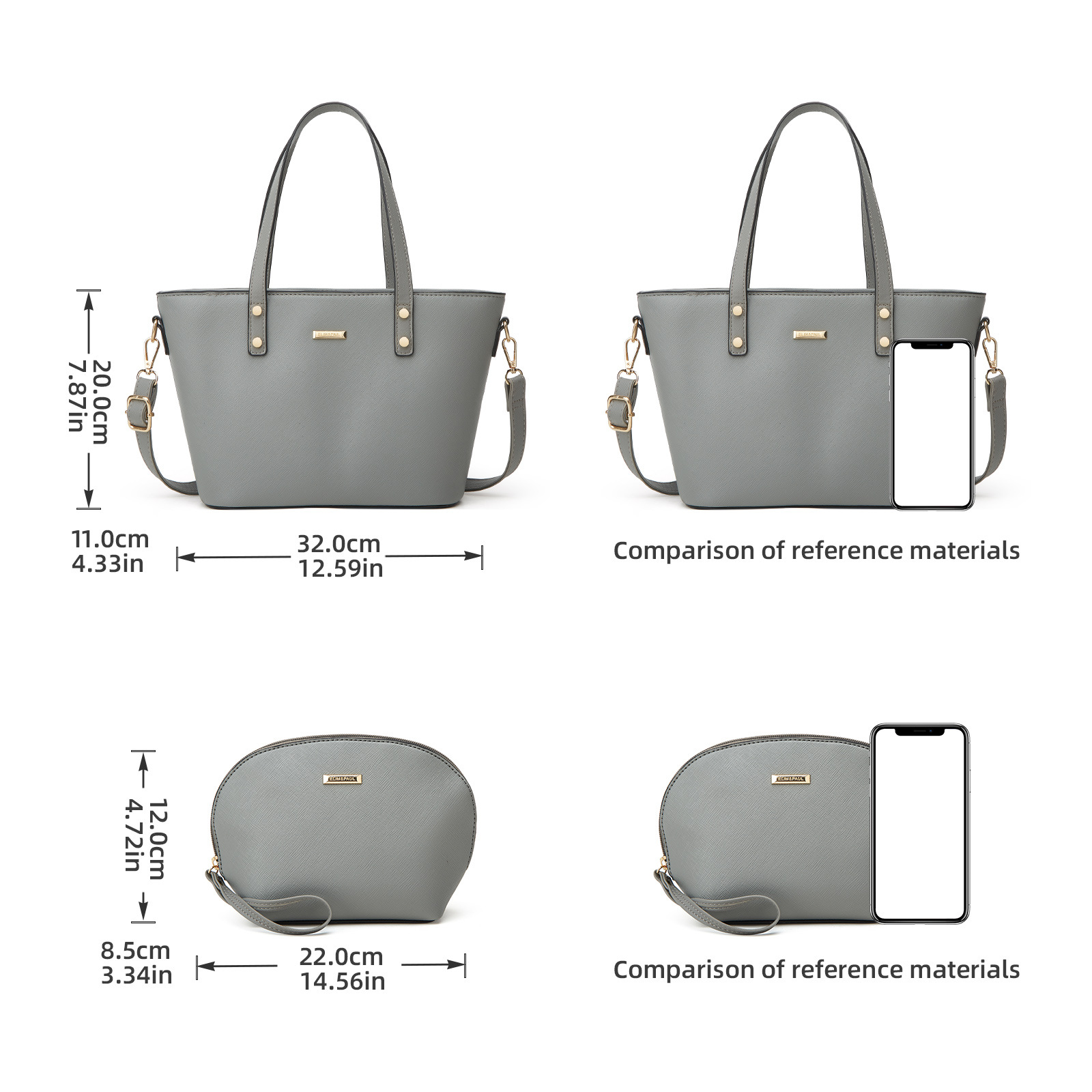 Women Tote Bag Handbags PU Leather Fashion Hobo Shoulder Bags Grey