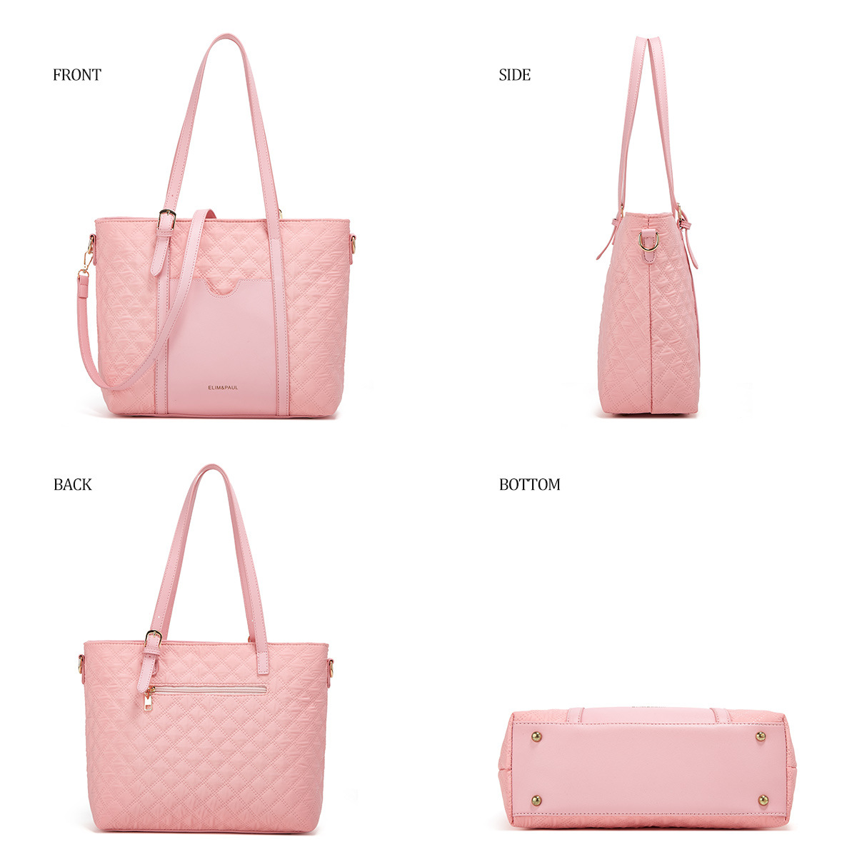 Women Fashion Synthetic Leather Handbags Tote Bag Shoulder Bag 3pcs Pink