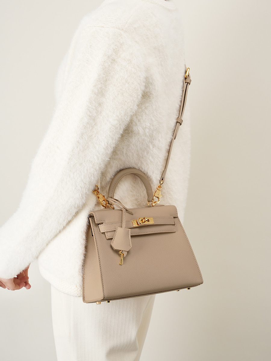 Genuine Leather Satchel Handbag for Women Vintage Handmade Shoulder Bag Grey