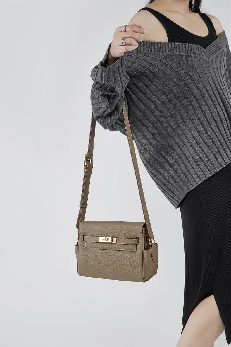 Women's Genuine Leather Crossbody Bag Handbags Purses Grey