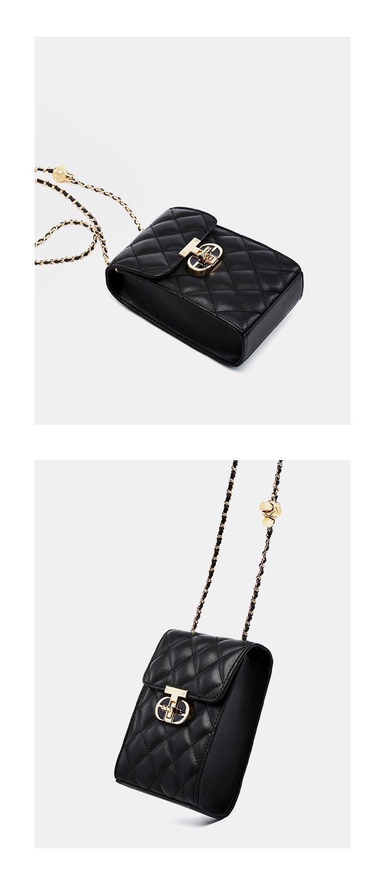 Genuine Leather Women's Bag Mini Phone Bag Women's Summer Crossbody Bag Black
