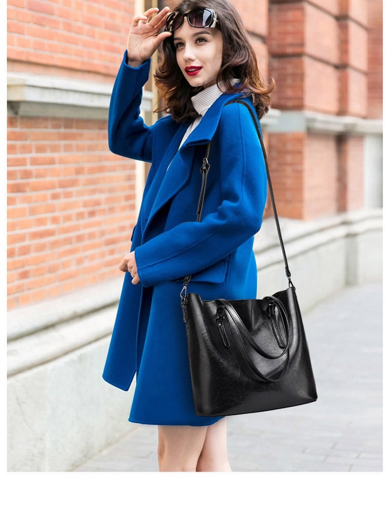 Women Vintage Hollow Handbag Oil Leather Shoulder Crossbody Bag Black