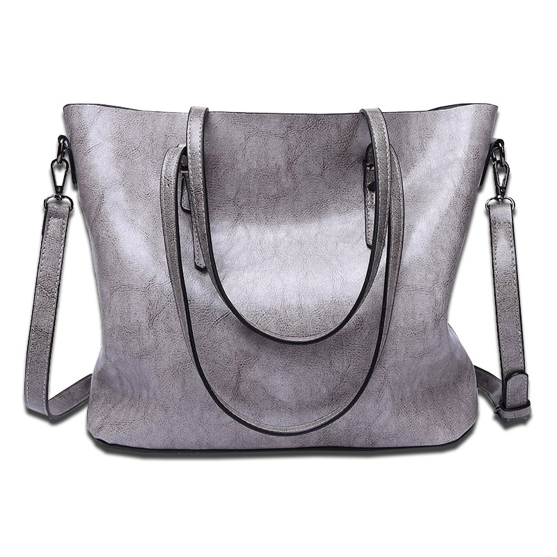 Women Vintage Hollow Handbag Oil Leather Shoulder Crossbody Bag Grey