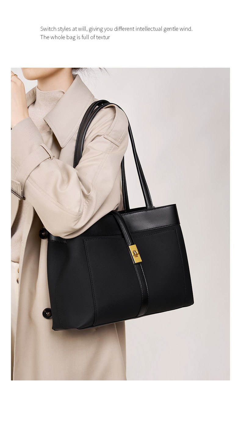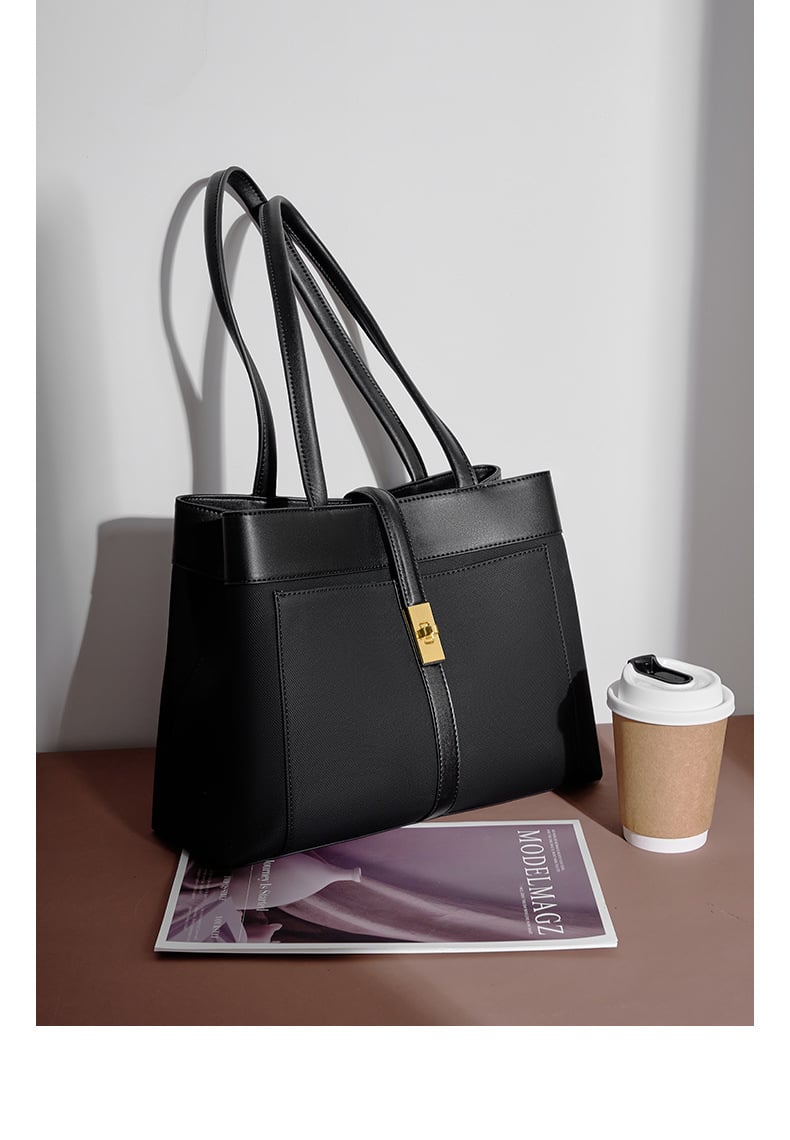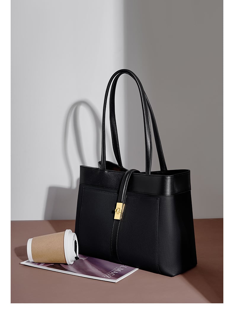 Genuine Leather Women Tote Bags Black