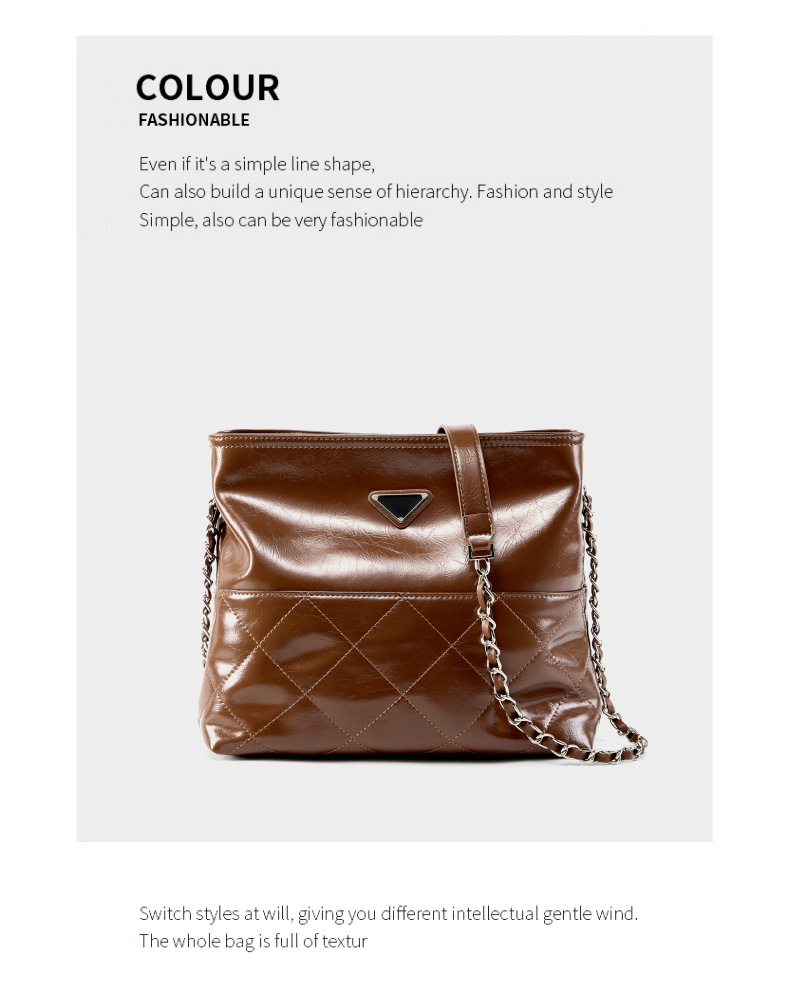 Genuine Leather Women Shoulder Handbags Leather Tote Bag Brown