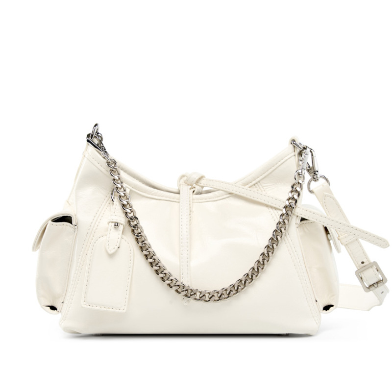 Soft Leather Hobo Handbags for Women Genuine Top Handle Bags Vintage Shoulder Purses White
